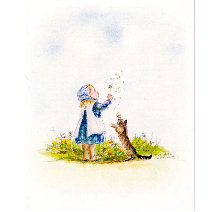 Tasha Tudor always captured the sweetest, most intimate moments of children exploring nature. This set of children in blue clothing is exemplary. Darling little note cards for spring and Easter missives.