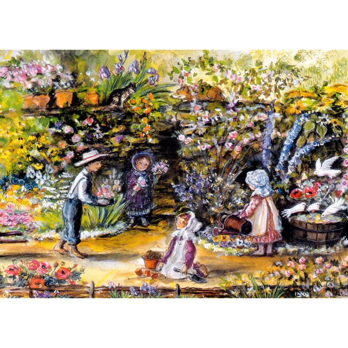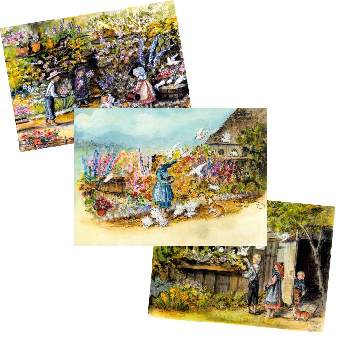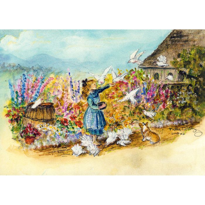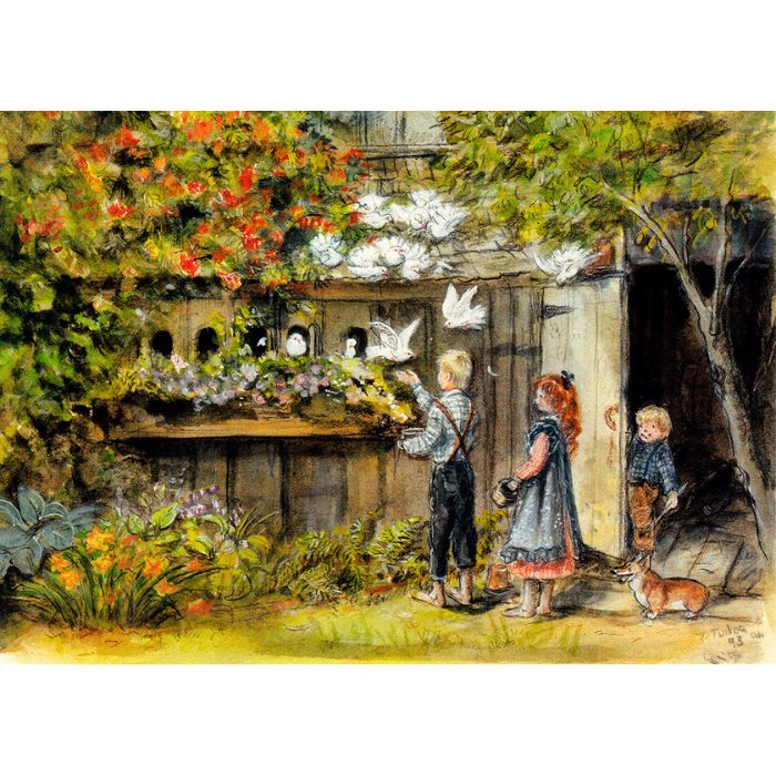 Tasha Tudor's lush New England garden serves as the backdrop for these children feeding doves, playing with corgis, and gardening. What could be more welcoming of spring, gardening season, and Easter?