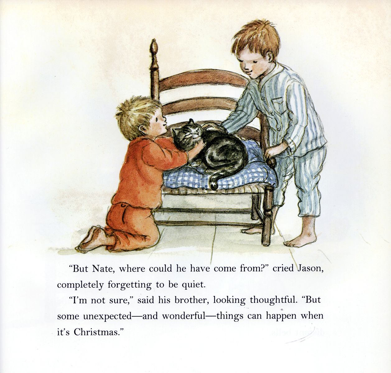 Written by Tasha Tudor's daughter Efner Tudor Holmes and illustrated by Tasha, this magical children's story tells the tale of a cold, lost cat and two hopeful young boys. Neither the cat nor the boys know it, but a small Christmas miracle is about to occur. Originally published in 1976.