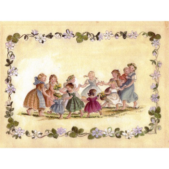 Tasha painted this image for her 1956 Caldecott Honor counting book, 1 is One. With a wonderful flower border and girls dancing in charming frocks, this print would add a cheerful touch to your daughter or granddaughter's room.