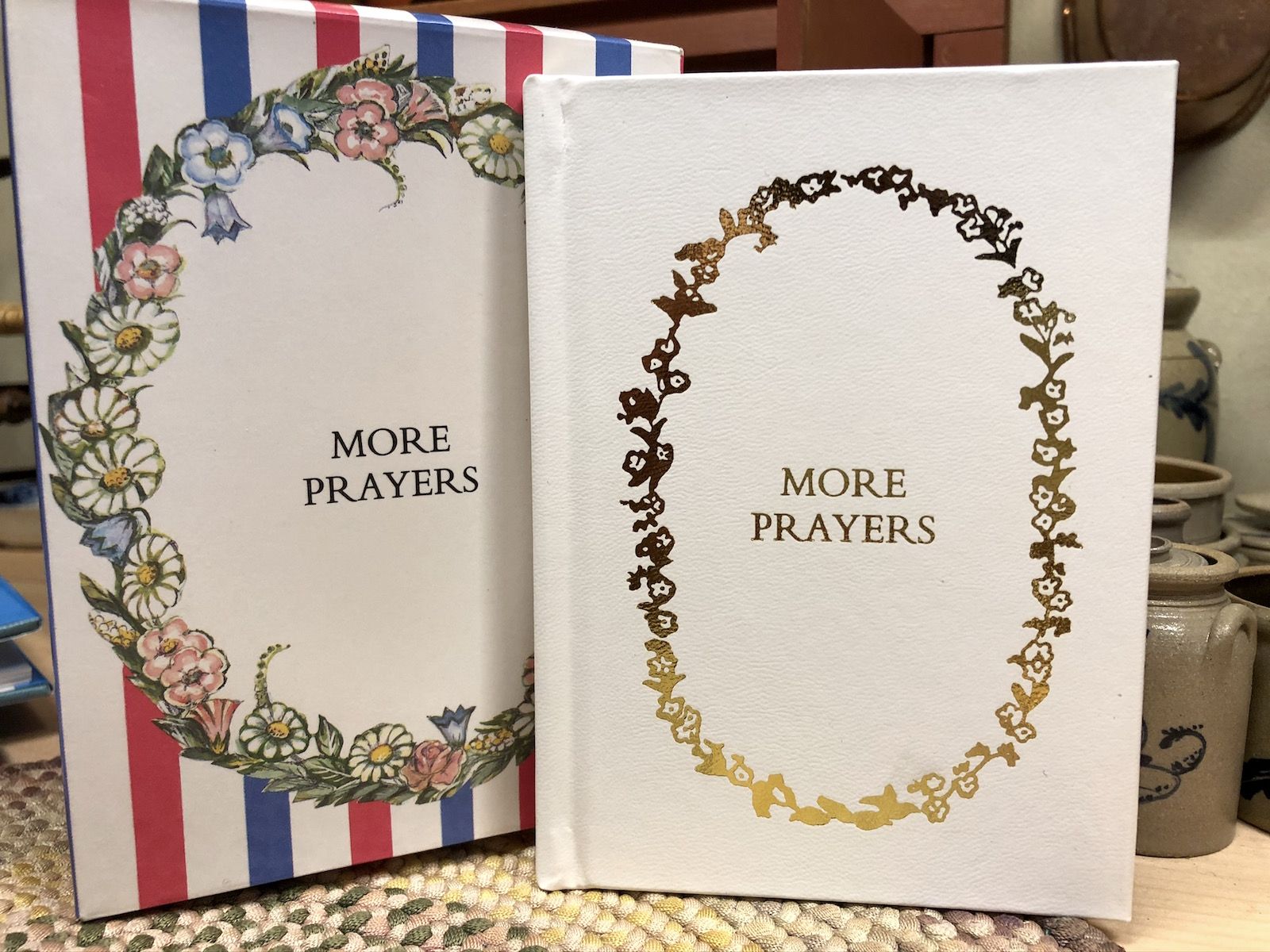Gorgeously illustrated half in full-color and half in black and white. Gilded page edges. Comes in a presentation box. White covers, no dust jacket. Eighteen prayers.