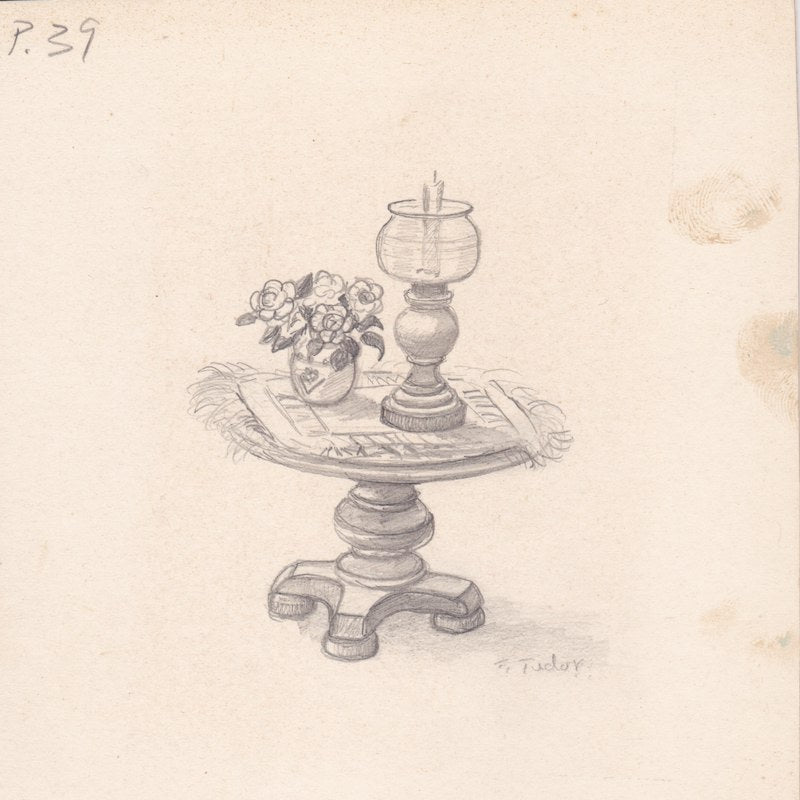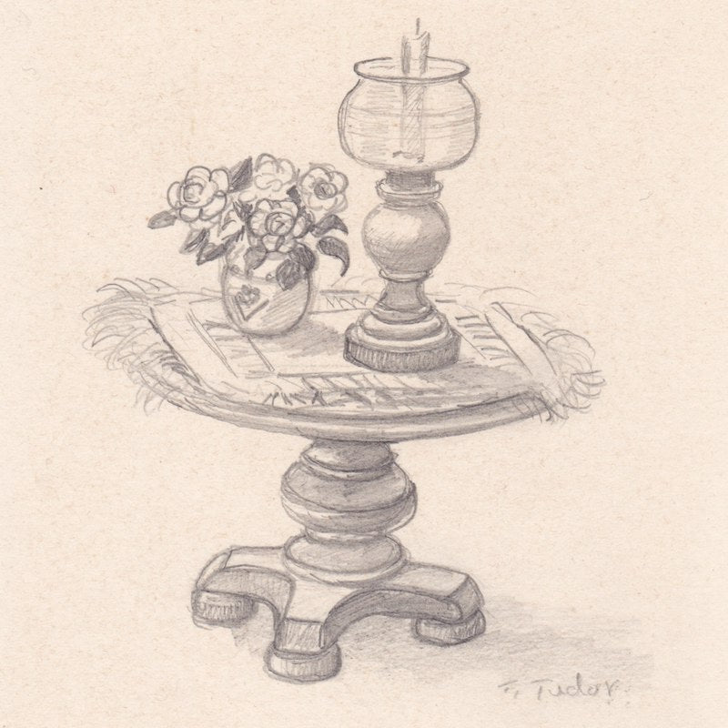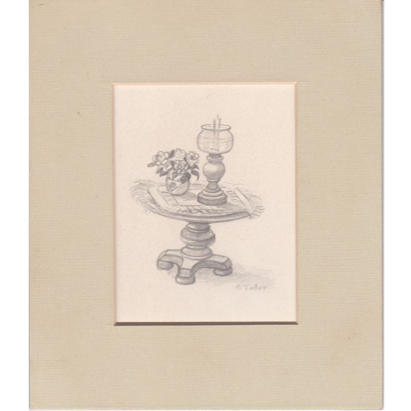 This drawing was originally purchased at the Dutch Inn Gift Shop in Mill Hall, Pennsylvania, which was owned and run by longtime Tudor family friends Ned Hills and his sister, Charlotte Hills Brown. This piece has been in the same family since its purchase.