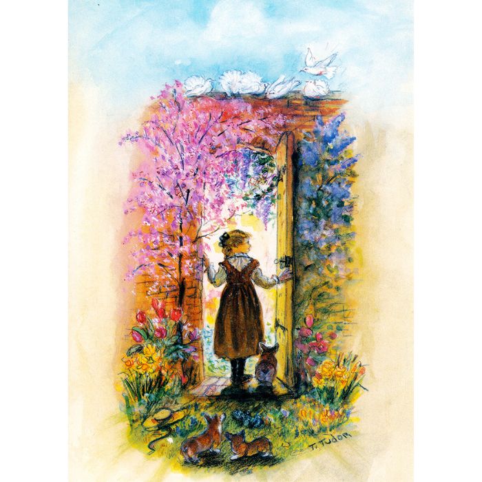 Tasha Tudor painted this watercolor image for the Vermont Flower Show in Burlington March 2001. This is a particularly cheerful rendition of Mary looking into the newly discovered Secret Garden. A wonderful theme for Easter--looking forward to the beauty of the garden and spring awakening!