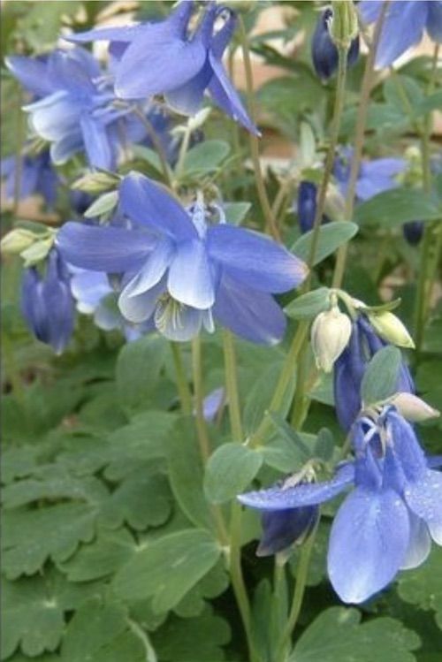 Everybody loves columbines! Will self-sow here and there, usually in the perfect place. A mix of lovely, nodding deep purple and more upright light purple or white varieties.
